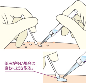 このお薬は水いぼのところにお薬を塗ってわざと水ぶくれをおこして、