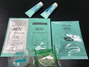 すべての化粧品のサンプルを揃えてはおりませんが、NOV(ノブ)シリーズ、コラージュフルフルはサンプルがございます。特にお問い合わせの多い、NOVの日焼け止めは、低刺激ながら水・汗に強いウォータープルーフで、石鹸で洗い落とせるので、使いやすさからも大変人気です。軽いつけ心地のミルクタイプと、しっとりタイプのシールドの2種類があります。NOVシリーズは、基本的に肌への負担が少ない低刺激のもので、敏感肌や肌荒れ・ニキビの方向けの洗顔石鹸もございます。その他、入浴剤、シャンプー・リンスなどもご用意しています。