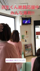 待合室のテレビで、先生やスタッフと応援いたしました。