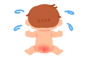 こんにちは。白鳥皮フ科のスタッフです。今日はおむつかぶれのお話です。おむつかぶれとは、おむつがあたっている部分におこる皮膚の炎症です。皮膚の赤みや湿疹、ただれの事をいいます。
