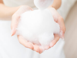 泡はしっかりと泡立てて顔に当てる際はこすらず、ゆっくりと回すように洗顔を!