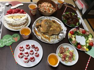 こんにちは☺スタッフYです。一足早くスタッフのメンバーとXmas会🎄を開きました。前菜のサラダからデザートまで手作りに挑戦✊~メニュー~*アボガドとトマトのサラダ(アボカドはビタミンEが入っており抗酸化作用、老化予防の作用があります。トマトには抗酸化作用のほか脂肪燃焼効果もあります。)*クリスマスリースサラダ(映え狙いで作りました。笑)*ローストチキン(鶏肉は美肌効果の高いコラーゲンが含まれており特に手羽先には多く含まれています。レモンやパプリカと食べ合わせると良いそうです。)*ハンバーグ(料理上手のスタッフKちゃんのお手製💛)*にんじんご飯(料理上手のスタッフYUちゃんのお手製💛ブログにも載っていますこちら)*サンタ🎅ケーキ&サンタイチゴ🍓🍓🍓(苺にはビタミンCが多く含まれており女性に嬉しい美肌・美白効果大!!しみ・しわを防ぐ働きもあります。)